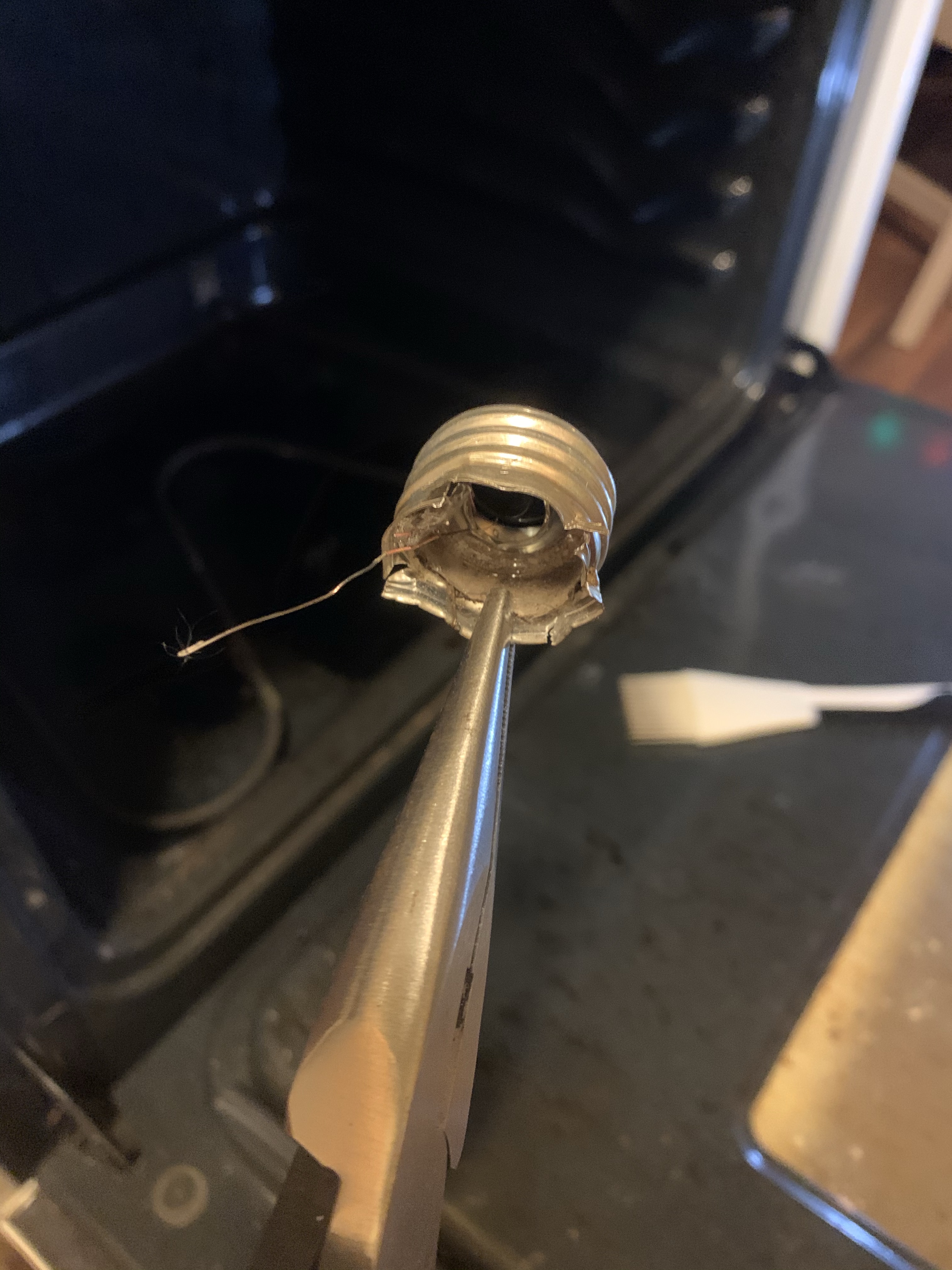 With these rosy visions in my head, I put down the light bulb and picked up a pair of pliers. After cracking more glass and bending a lot of metal, I spun the broken socket free and closed the oven door on that saga.