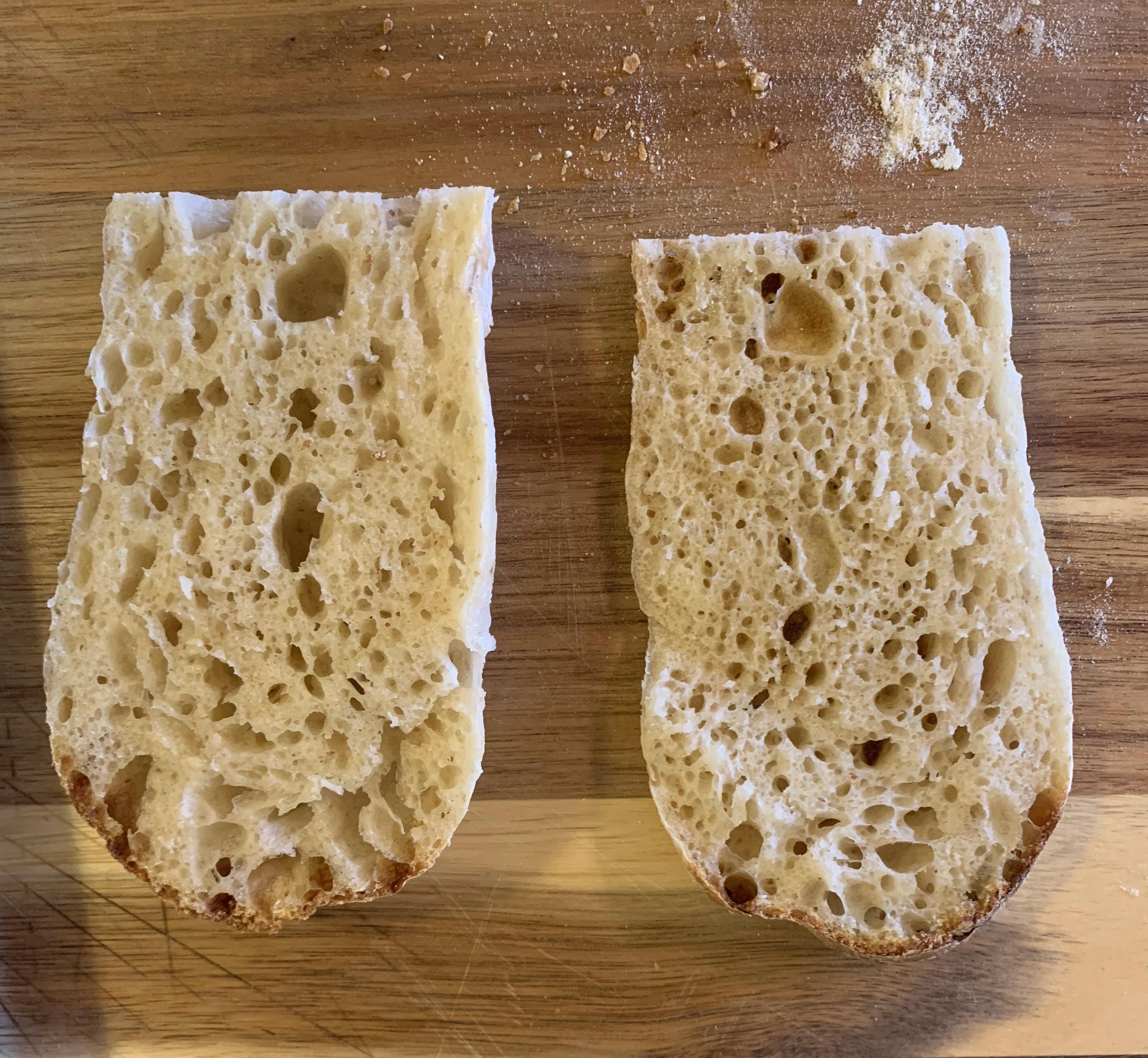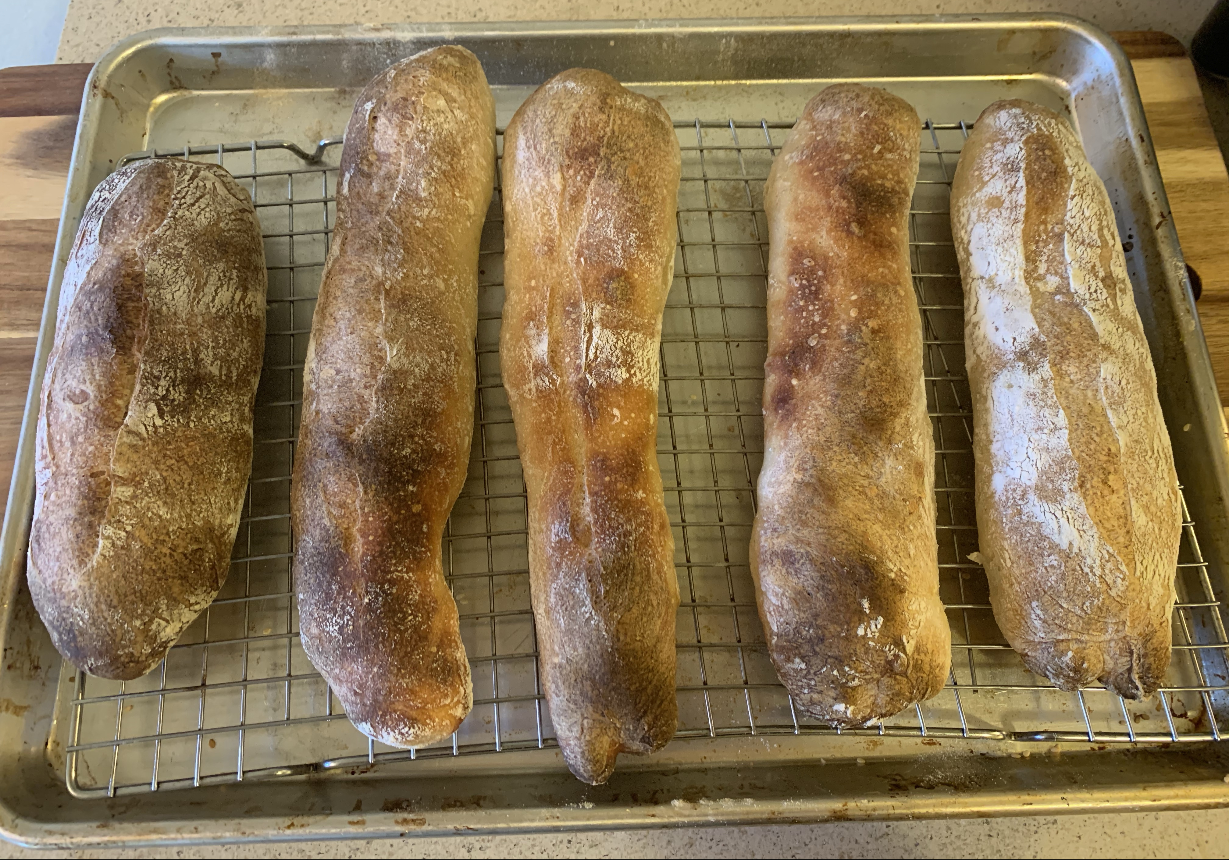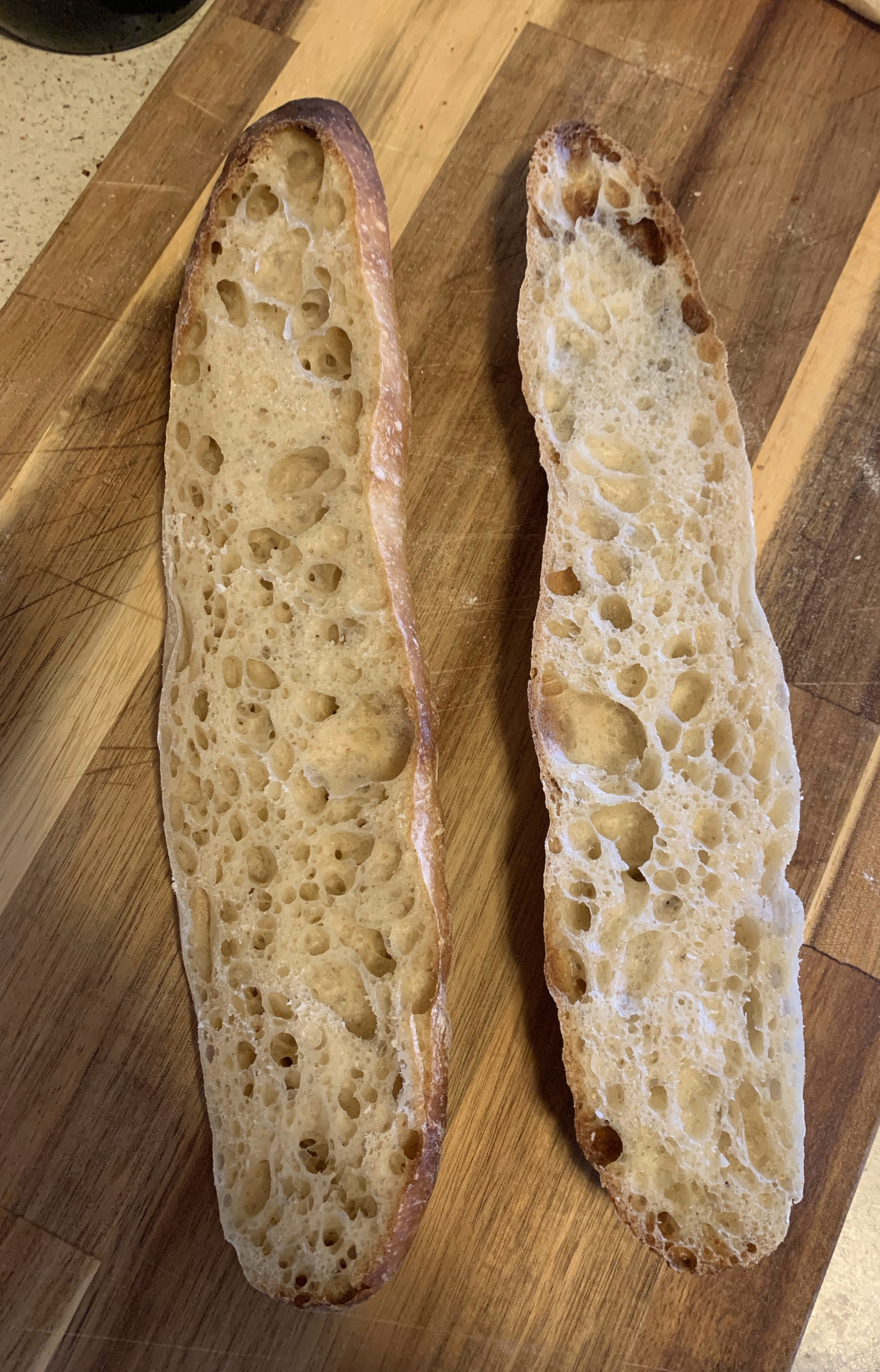 Even so, the loaves stuck to the couche and the transfer peel after proofing. I attempted a single score on each mess loaf and baked them on a stone.