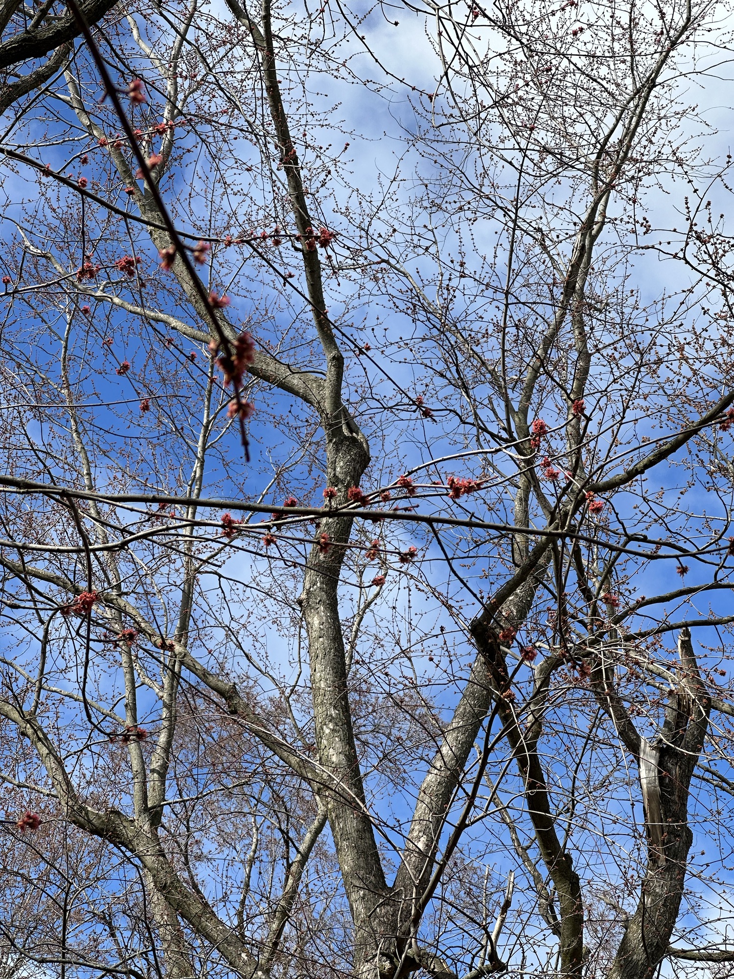 Several neighbors have entirely removed their silver maples. I don’t expect mine to live forever, but I believe they have good years left in them. I don’t want to look at my trees and think only of their expiration date. They are beautiful trees! They create a canopy over my street. They provide shade on hot days. They feed and house woodpeckers, squirrels, and hundreds of other birds and bugs. In the spring, the branches bud with red clusters, signaling the end of winter. In the summer, brown helicopters twirl to the ground, resting until they reemerge as thousands of eager seedlings. In the fall, the leaves turn gold and litter the lawn with bright stars. In the winter, the bare branches scratch the skies in silent stillness, while animals and insects sleep in the deadwood branches.