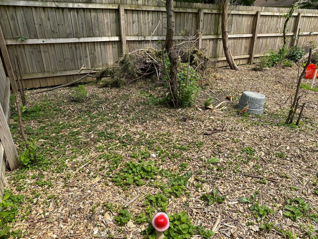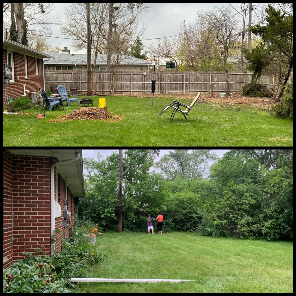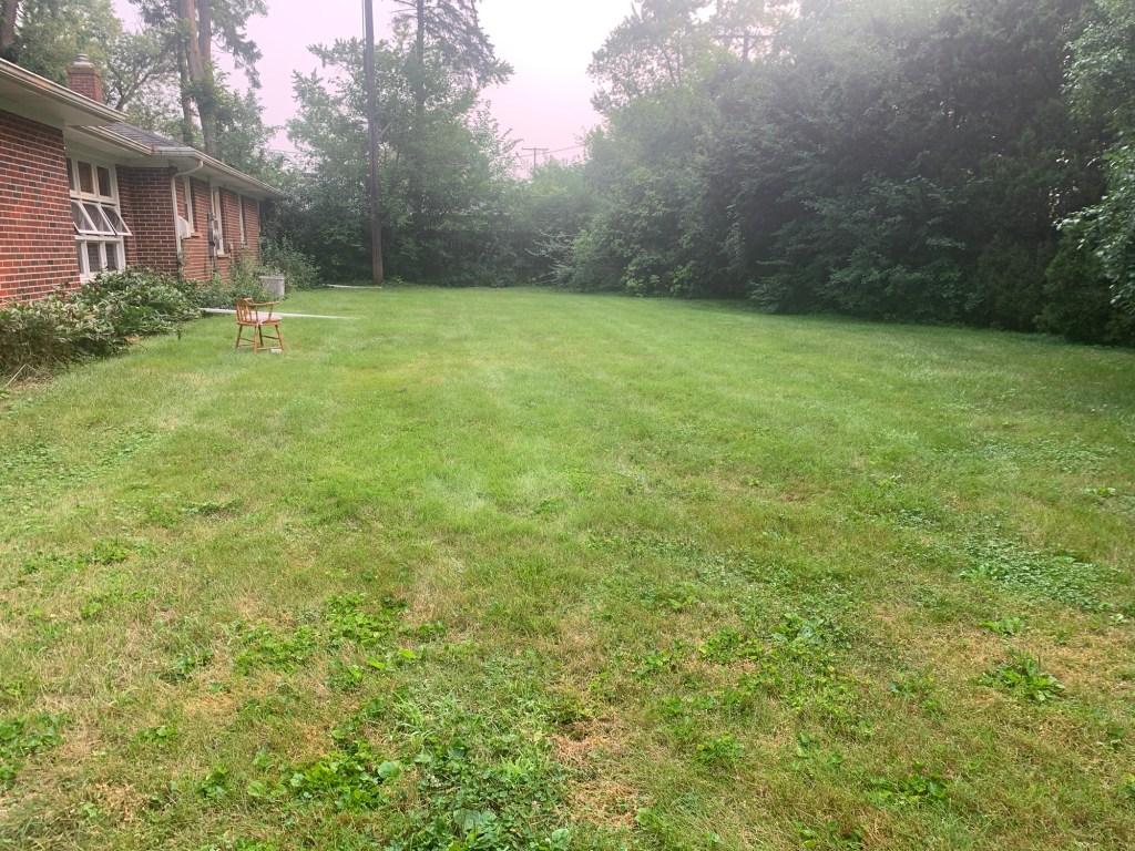 Another misguided ornamental, the previous homeowners appear to have planted buckthorn along the north and south edges of the property. What may have been a few intentionally placed trees were, by the summer of 2021, a dense forest lining three sides of my yard.