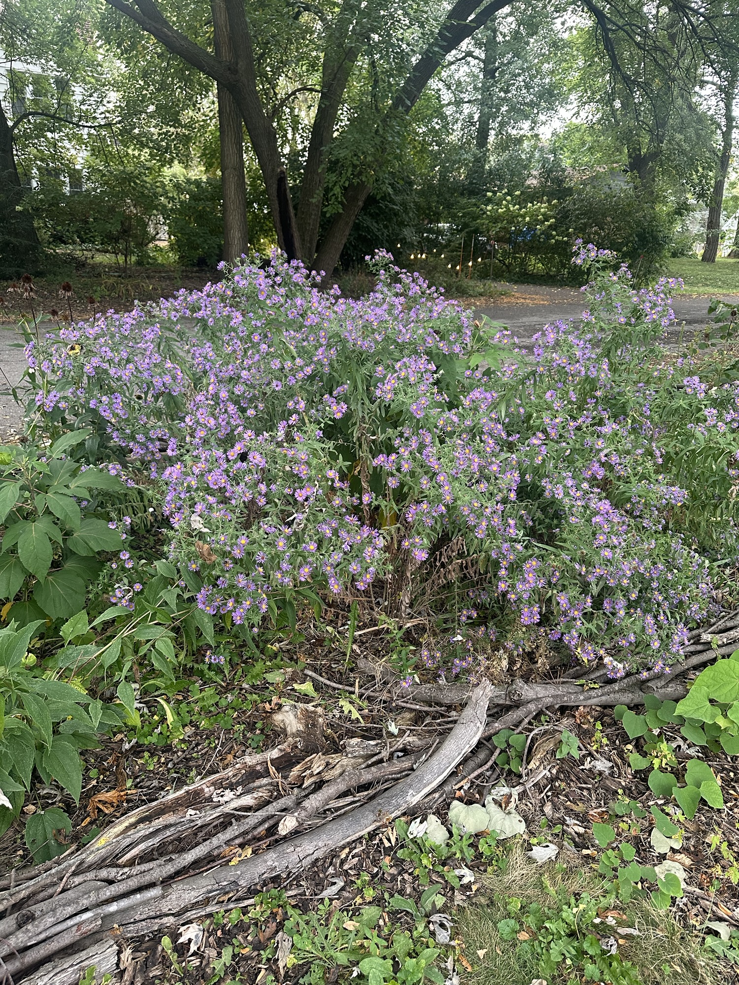 If aliens observed my yard, they may determine that New England aster is the primary life form due to their overwhelming presence in every nook and cranny of my garden.